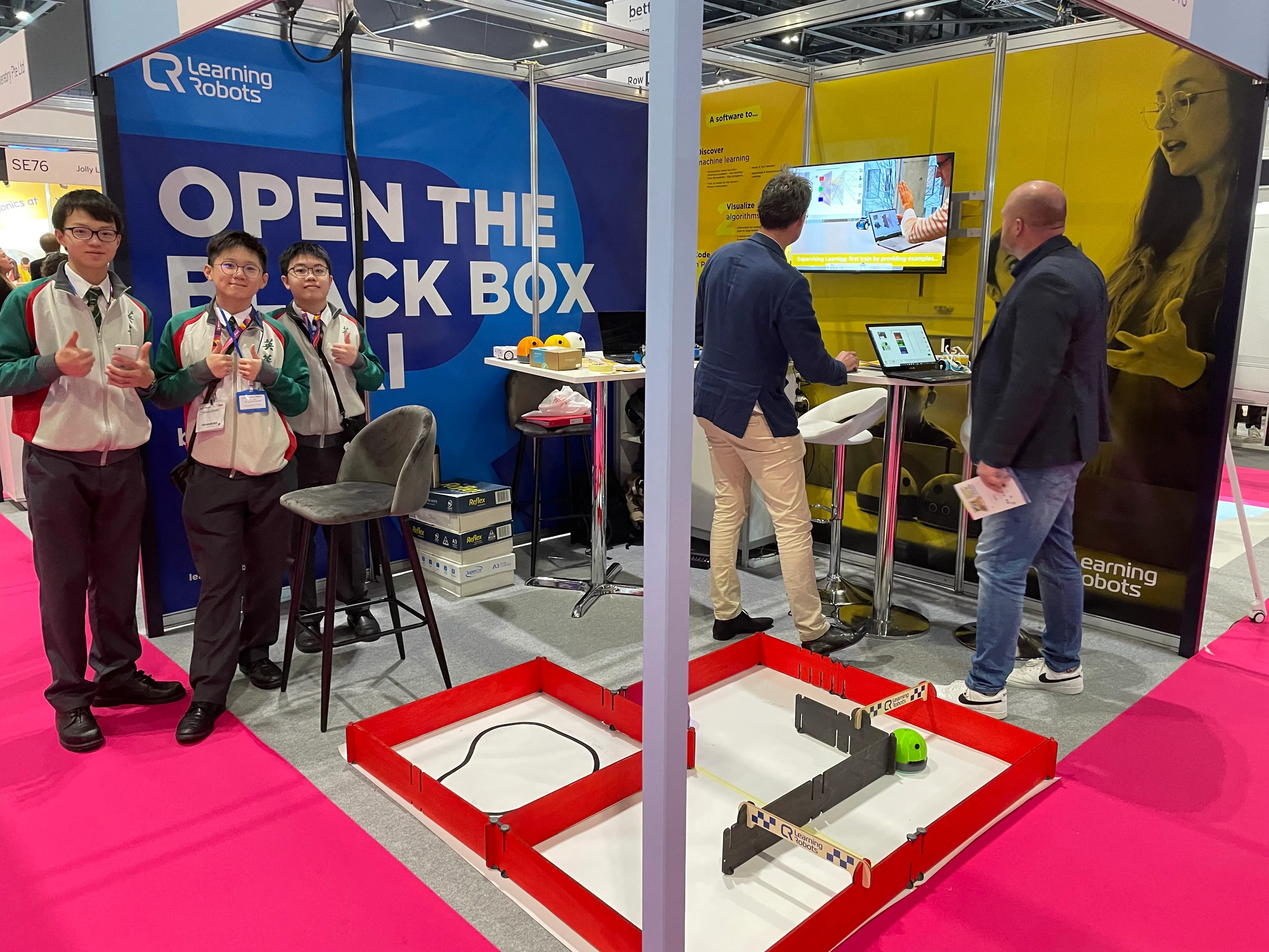 L’édition 2024 a marqué un tournant pour Learning Robots. Sur notre stand, des démonstrations ont été réalisées par des élèves et étudiants de Hong Kong qui utilisent déjà notre solution AlphAI dans leurs établissements. Nous avons eu l’honneur d’accueillir des visiteurs prestigieux, comme le Secrétaire d’État à l’Éducation de Hong Kong, des membres de la Direction Académique de l’Île-de-France, et des représentants de la Commission Européenne.
