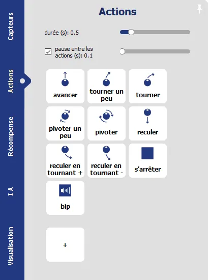⚠️ Das Hinzufügen einer neuen Aktion wird den Erfahrungsspeicher des Roboters löschen.