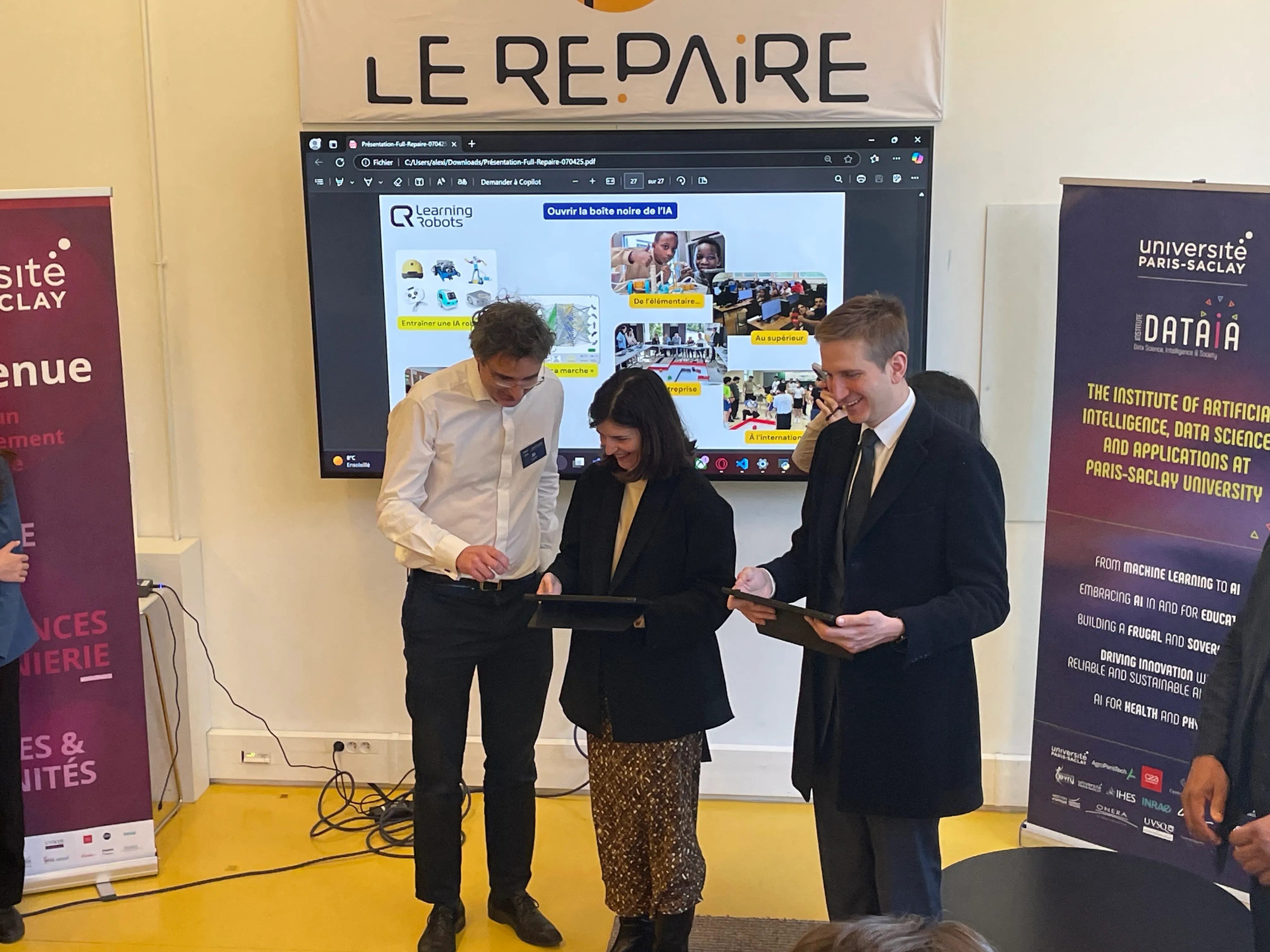On April 7, Learning Robots had the honor of taking part in an exceptional day dedicated to innovation in artificial intelligence, on the occasion of the official inauguration of the "DATAIA" AI Cluster in Paris-Saclay. Organized around a high-level scientific symposium, the event brought together researchers, students, entrepreneurs and public players committed to building ethical, inclusive and forward-looking AI.