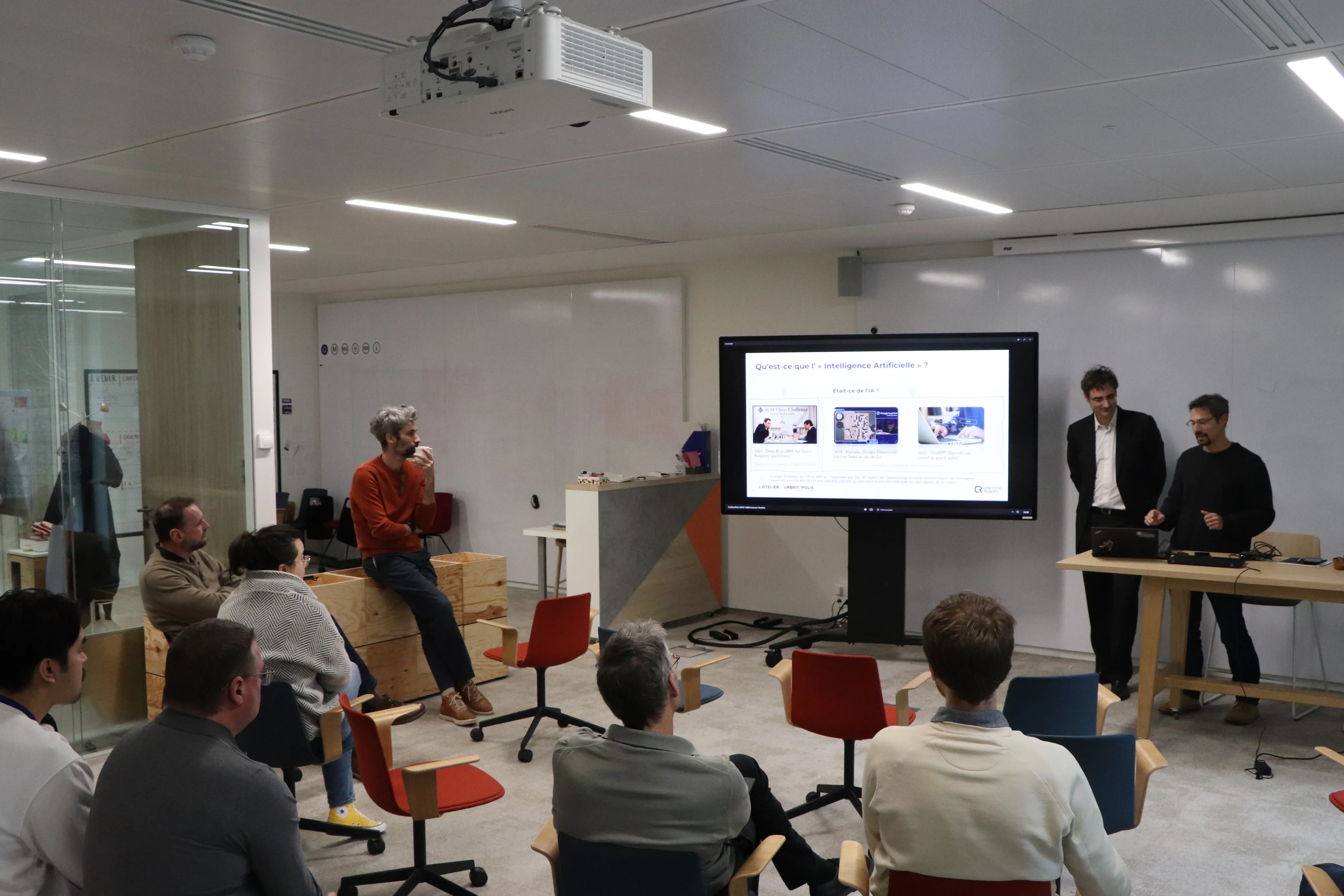 This workshop engages your teams in a playful journey of discovery of AI, through an Autonomous Robot Race. Your employees manipulate and experiment with machine learning concepts, while building team spirit through a dynamic, collaborative experience. Perfect for raising awareness in a fun way while strengthening bonds between colleagues.