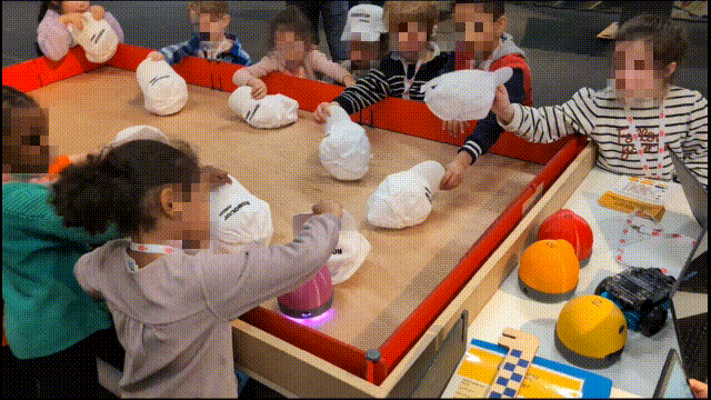 - On inverse les rôles, le robot parvient-il à suivre la main de l’autre élève ou un objet différent ? Si non : poursuivre l’entraînement jusqu’à ce que le robot soit capable de suivre les mains des deux élèves.