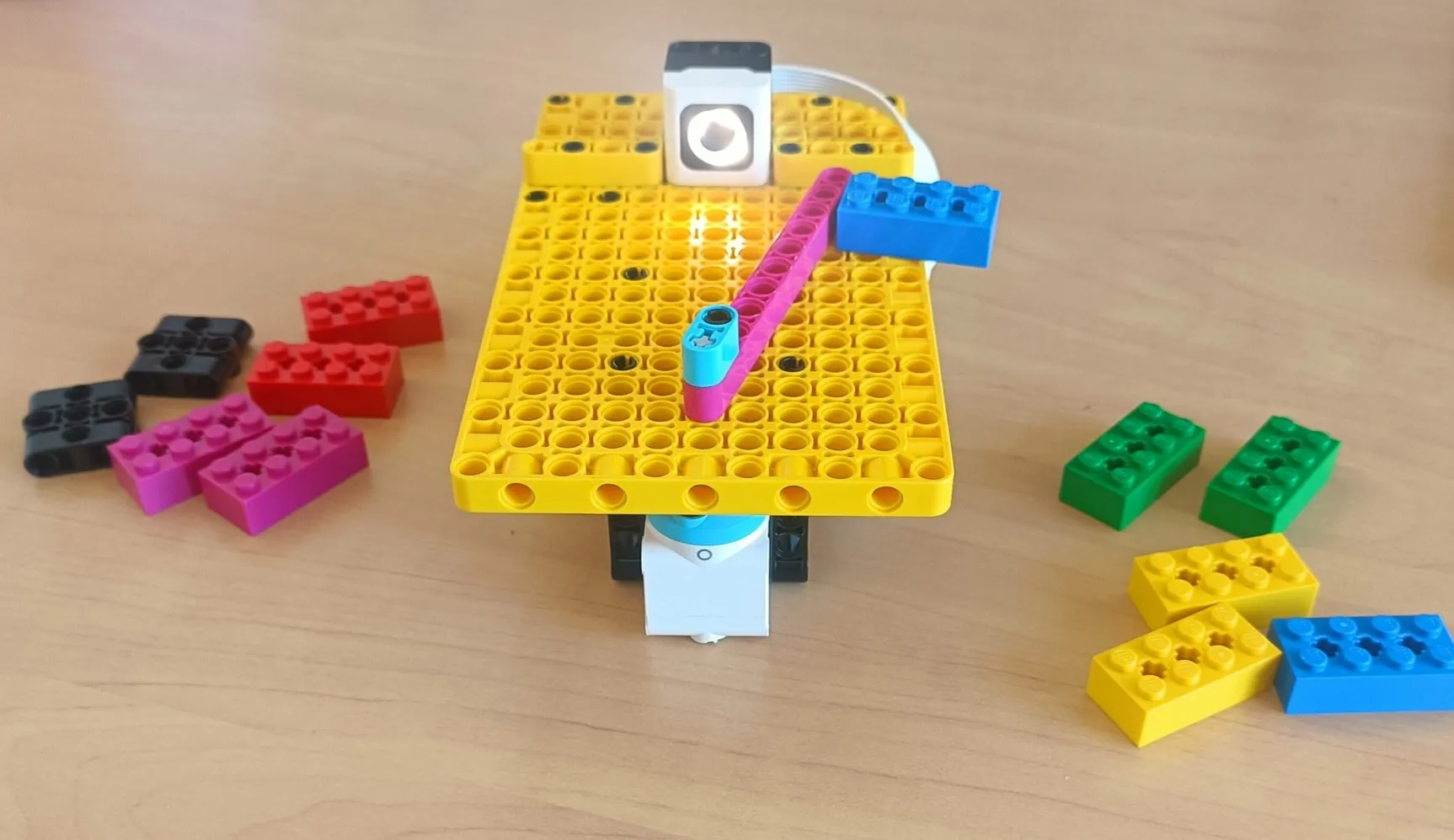 La ressource PDF (en anglais) inclut une première activité "Caresse ton Hub Spike" qui permet de s'approprier le fonctionnement de AlphAI avec Lego Spike dans une situation très simple.